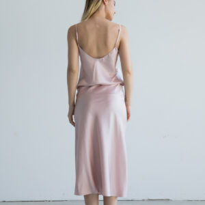 Tesatura catifelata si foarte placuta la atingere. Croi feminin pe bias care avantajeaza silueta, cu elastic fin in talie. Cusaturi ton in ton.
