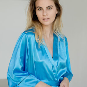Halat de interior, confectionat din satin, ce poate fi purtat inchis sau deschis, cu ajutorul cordonului de care dispune. Se recomanda spalarea manuala, delicata a produsului, la o temperatura de maxim 30 grade C.