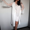 Halat de interior cu maneci evazate din dantela chantilly, confectionat din satin, ce poate fi purtat inchis sau deschis, cu ajutorul cordonului de care dispune. Se recomanda spalarea manuala, delicata a produsului, la o temperatura de maxim 30 grade C.