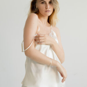 Maiou din satin rosu cu dantela brodata Chantilly pentru un plus de senzualitate.