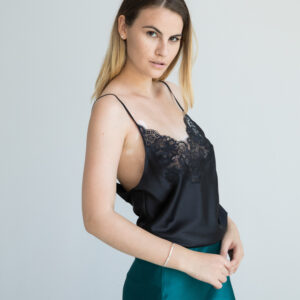 Maiou satin negru cu dantela brodata chantilly, pentru un plus de senzualitate.